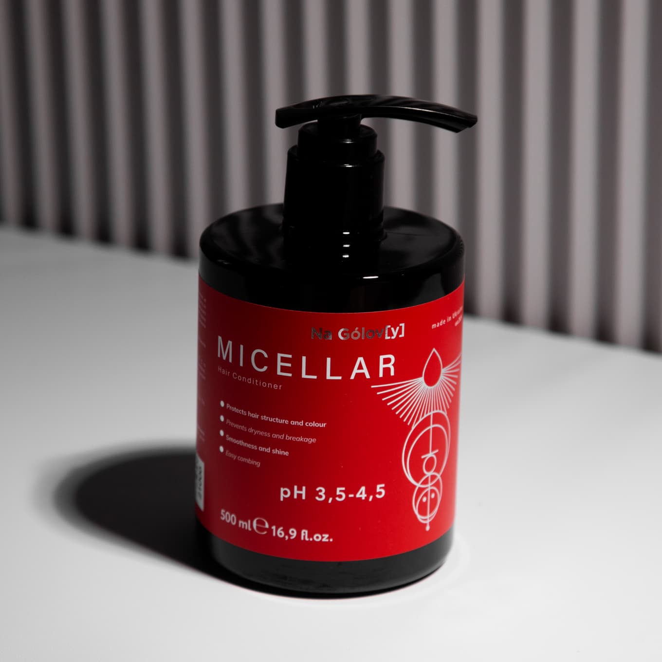 Міцелярний кондиціонер для волосся ТМ «Na Gólov[y]» допомагає зберегти природний ліпідний бар’єр і зволожити волосся без ефекту жирності та обтяження. Комплекс фосфоліпідів та олії соняшника завдяки спорідненій до волосся природі сприяє відновленню його структури і захисту кольору, надає еластичності та об’єму. Кондиціонер підтримує здоровий вигляд волосся, надає гладкості та блиску.
