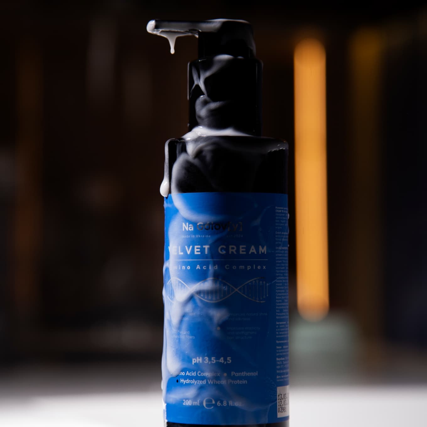 Незмивний крем-кондиціонер із комплексом амінокислот VELVET CREAM ТМ «Na Gólov[y]» — це інноваційний продукт для догляду за пошкодженим волоссям. Комплекс амінокислот, гідролізованих протеїнів пшениці та пантенолу сприяє зволоженню волосся, надаючи йому гладкості та здорового блиску. Засіб сприяє полегшенню розчісування, залишаючи волосся м’яким, шовковистим і приємним на дотик.