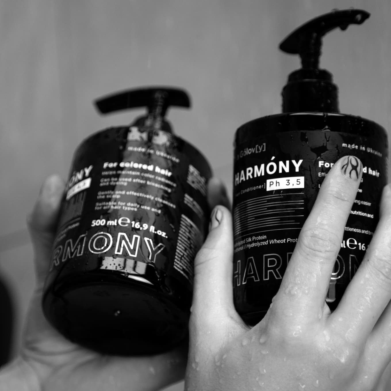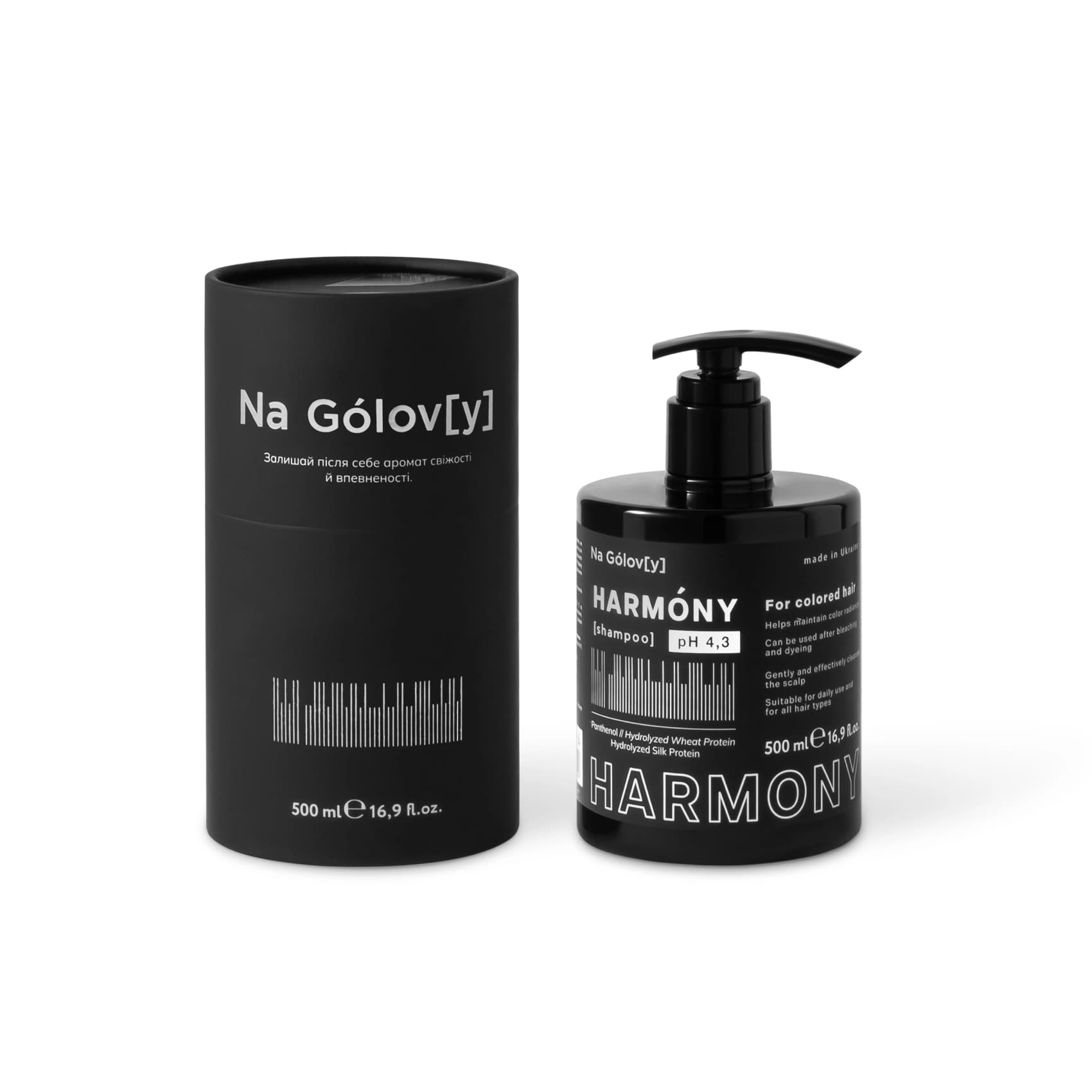 Шампунь для фарбованого волосся Harmony  Na Golovy дбайливо й ефективно очищує шкіру голови та волосся, допомагає підтримувати інтенсивність кольору, підходить для щоденного використання і всіх типів волосся. Має збалансований склад для делікатного й ніжного очищення.