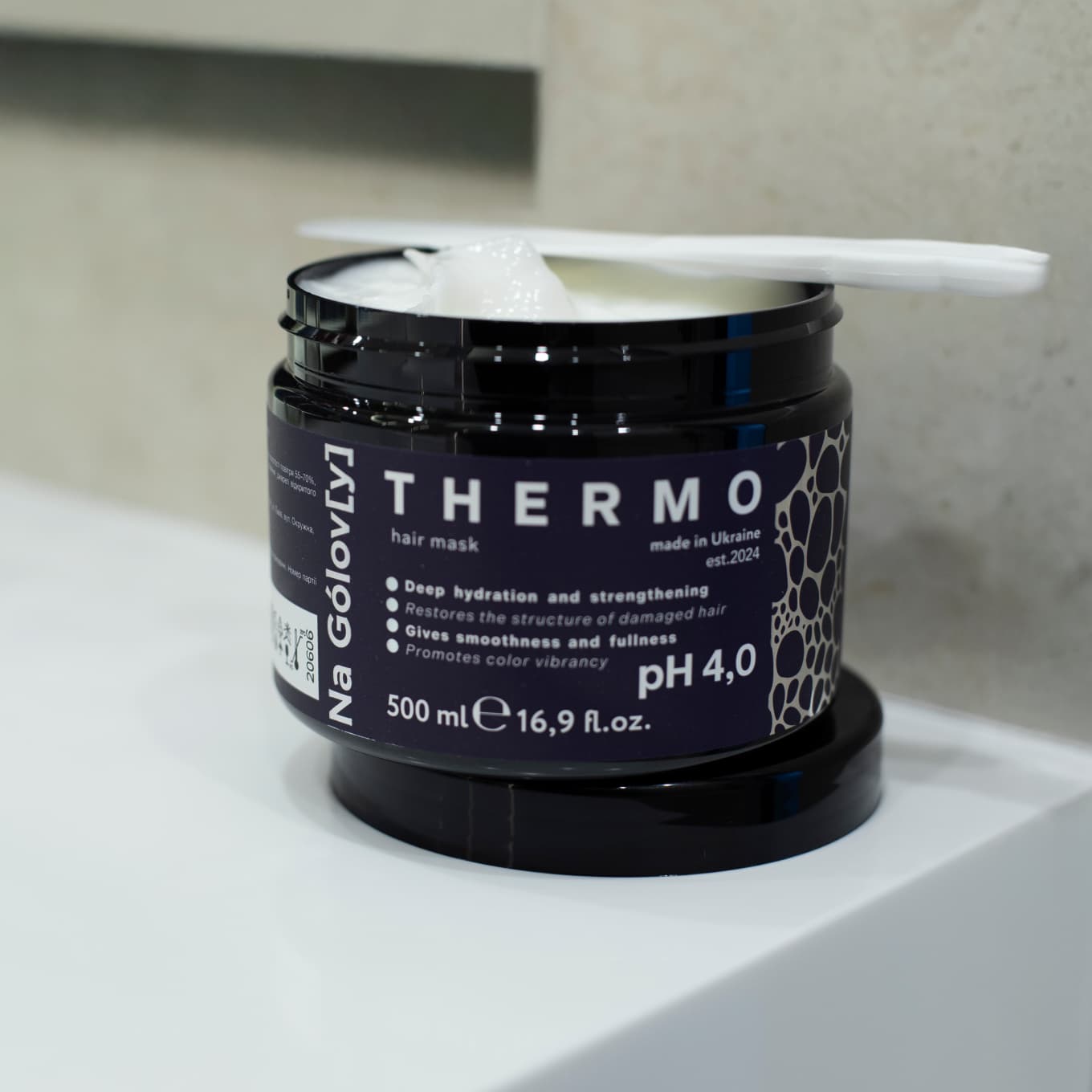 Термомаска для волосся ТМ «Na Golov[y]» призначена для зволоження і зміцнення пошкодженого, сухого волосся. Вона ефективно кондиціонує і розгладжує, глибоко зволожує, має армувальний ефект завдяки вмісту